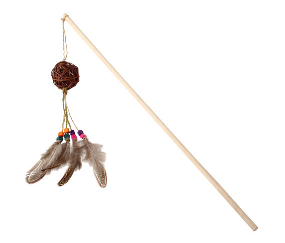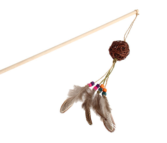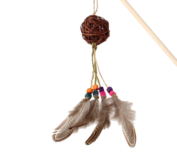 7281 Ahşap Toplu Tüylü Boncuklu Kedi Oltası